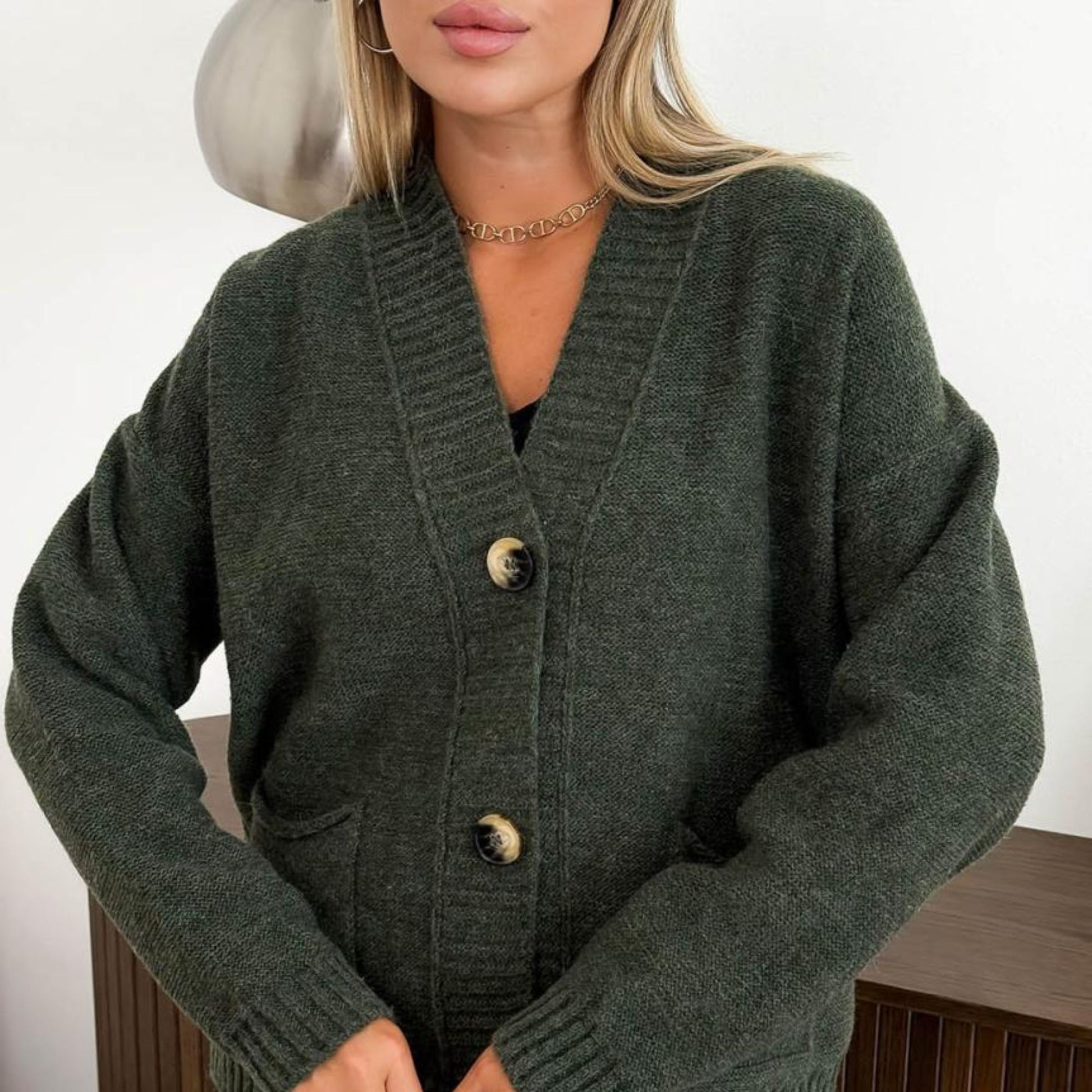 The Dark Green knitted cardigan from the Casual Wool collection combines style, warmth, and everyday comfort. Featuring an oversized fit, button closure, wide sleeves, and handy pockets, it’s the ideal layering piece for cooler seasons.