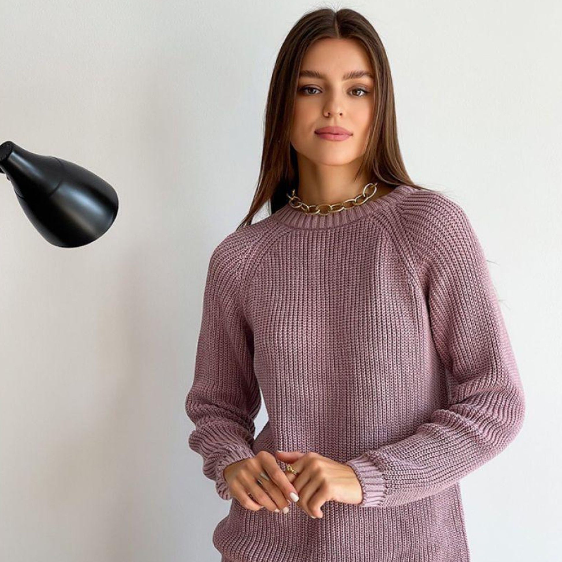 The pink knitted sweater brings a soft, feminine touch to your wardrobe while staying versatile and cozy. Made from a breathable cotton blend, it feels lightweight, skin-friendly, and comfortable for everyday wear. With its minimalist cut and long sleeves, this sweater is easy to style - whether layered for cooler weather or worn on its own for a fresh spring look.