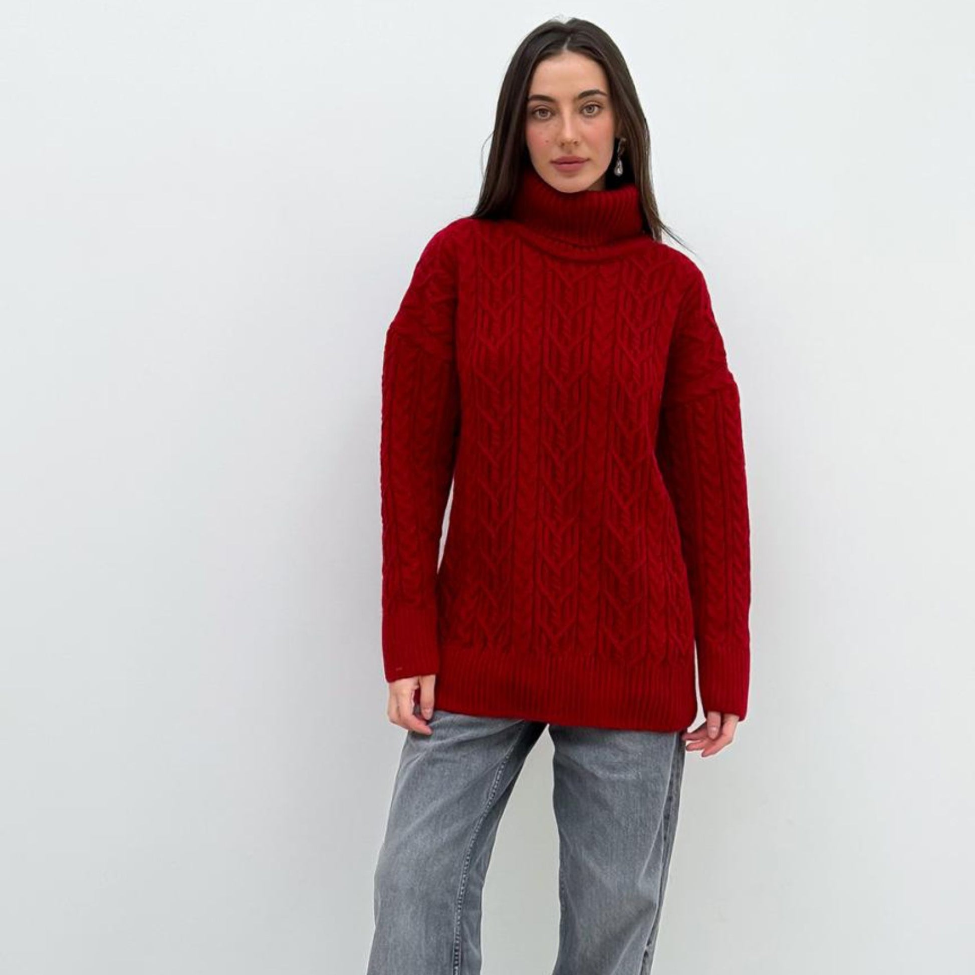 The red knitted sweater Olivia combines comfort, warmth, and timeless style. Made from a soft wool blend (30% wool, 70% acrylic), it features a beautiful textured knit with a cozy neckline that feels pleasant against the skin. With its relaxed oversized fit, this sweater is perfect for creating stylish and comfortable looks during autumn and winter.